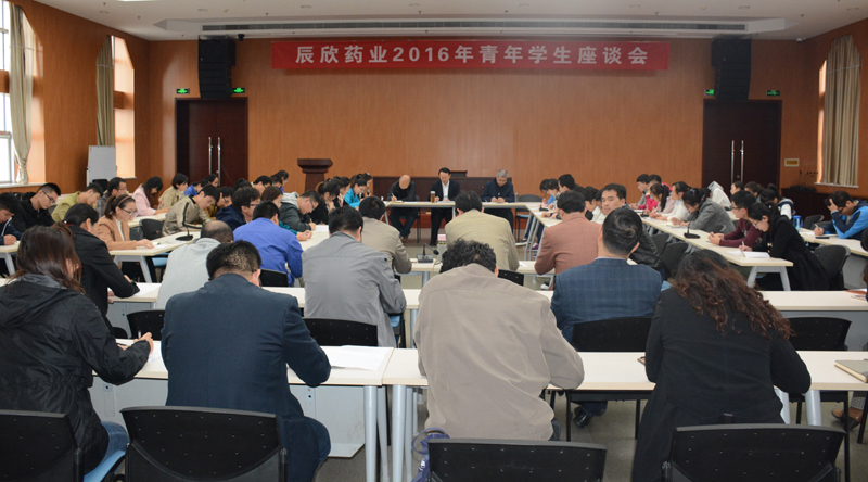 为构建青年学生与公司管理层的有效沟通,解决青年学生成长与留用的实际问题,创造青年学生良好的发展环境,10月25日,辰欣药业股份有限公司2016年青年学生座谈会在办公楼七楼培训室召开。会议由韩延振副总经理主持,公司董事长杜振新、副总经理郝留山、辰龙药业总经理周霞、人力资源部部长王永霞、安全生产部部长盛照志、研发部经理袁洪雨等中级管理人员及各部门青年学生代表共计60余人参加了座谈。