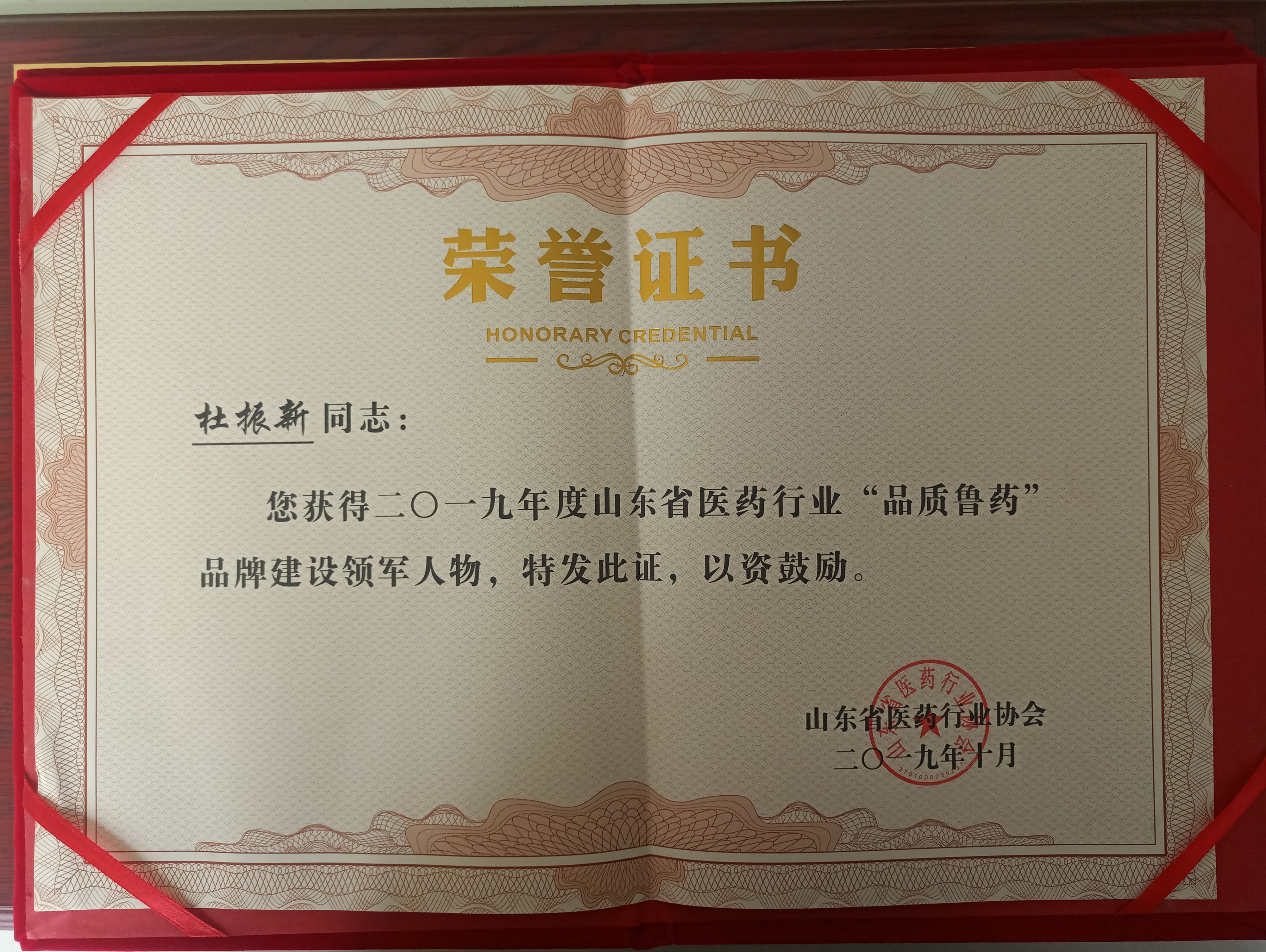 杜振新董事长获“2019年‘品质鲁药’品牌建设领军人物”称号