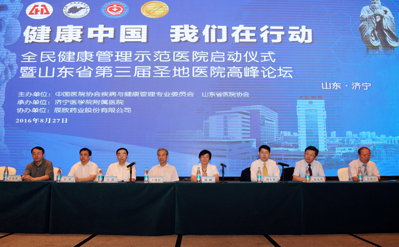 乘着全国卫生与健康大会的东风, 由中国医院协会疾病与健康管理委员会、山东省医院协会主办,辰欣药业与济宁医学院附属医院联合承办的“全民健康管理示范医院启动仪式——健康中国•我们在行动暨山东省第三届圣地医院高峰论坛”在济宁举行。