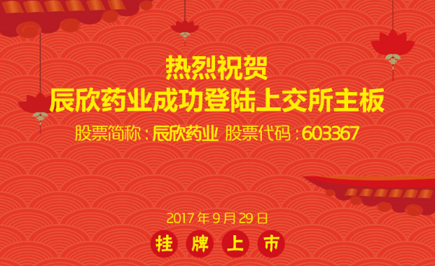 热烈祝贺辰欣药业成功登陆上交所主板,股票简称:辰欣药业,股票代码:603367,2017年9月29日挂牌上市!