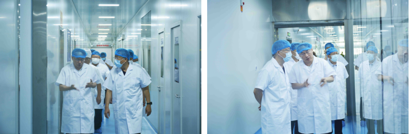 在药品生产车间,调研组指出,要深入学习贯彻习近平总书记关于食品药品安全的重要讲话和重要指示精神,提高政治站位,药品质量管理理念要始终贯穿药品生产全过程,把药品质量安全放在药品生产第一位,强化药品风险管控,严守药品安全底线,保障人民群众用药安全。