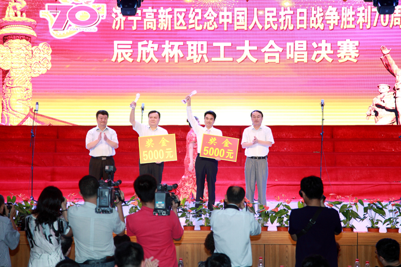 本次大赛的举办旨在纪念中国人民抗战胜利70周年暨中华全国总工会成立90周年,得到社会的广泛关注,共有18支代表队参赛。辰欣药业作为此次比赛的协办单位,积极组织广大员工备赛、参赛,组建了90人的合唱队伍参加了初赛和决赛,并取得了优异成绩。为保证比赛的公平性,辰欣药业作为此次比赛的协办单位,成绩不参与名次评选。组委会为感谢辰欣药业为筹办此次比赛付出的努力,专门为辰欣药业代表队颁发特别奖。